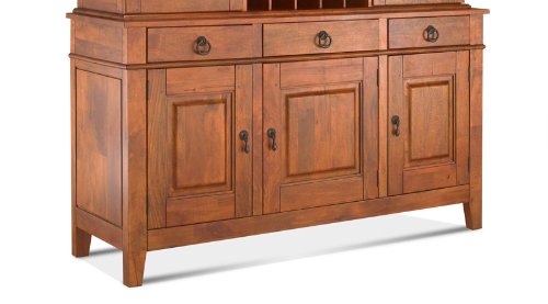 Our Urban Craftsmen collection is superbly crafted with a rich golden stain and shaker inspired design. Panel doors and rubbed bronze hardware complete the look of this collection. Dining Room Buffet dimensions are 36-inch h by 20-inch d by 63-inch w.